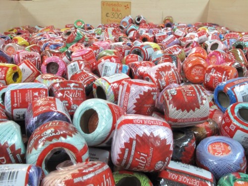 This bin of thread on sale at La Gloria in San Jose, Costa Rica, may seem ordinary but it caught my eye as ‘art trouvé’ . While I wasn’t able to capture the brilliance of the colours it was worth a try and shows why it’s always good to have a camera handy.