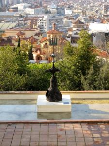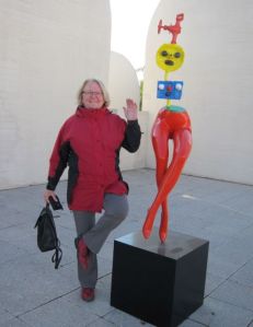 A short way along the road from the cable car is the Joan Miro museum and since both Carol and I had that on our “to do list” we purchased tickets and ventured in. Whimsical, multi media, colorful with the guidebook describing Miro as “one of the 20th centuries most celebrated artists” we were not disappointed. Using incredible materials, huge art pieces of cloth, bright fabrics, wood, found objects which formed collages hung from many walls and were at least ’10 by 10′. There was a wonderful video describing the man who lived for his art until he was 90 years old.