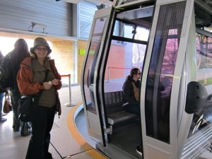 Pouring rain again when we awakened on Day 4 of our trip. It took about 10 seconds for both of us to decide to stay indoors until the rain stopped. 8 hours the day before had worn us down. By noon the sun was shining and we headed for Montjuic on the subway and funicular. What a system here in Barcelona; 11 underground lines crisscrossing the entire city with amazing signage, reasonable fares (10 euros for 10 trips) and efficient, clean cars. When the subway came to our stop we hopped on the funicular which brought us back to ground level and then paid for a “cable car” ride up the mountain to Castell de Montjuic.