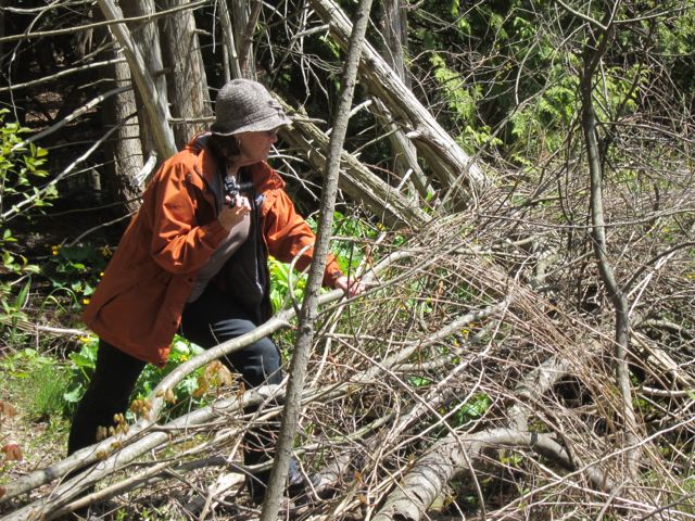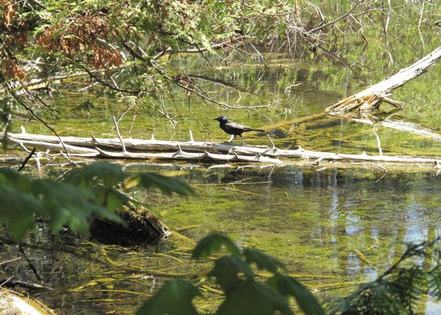 The ponds were springing to life, there were tree frogs answering the call of a nearby chain saw and a Great Blue Heron took to the sky…yes we know this is not a heron but she was too fast.