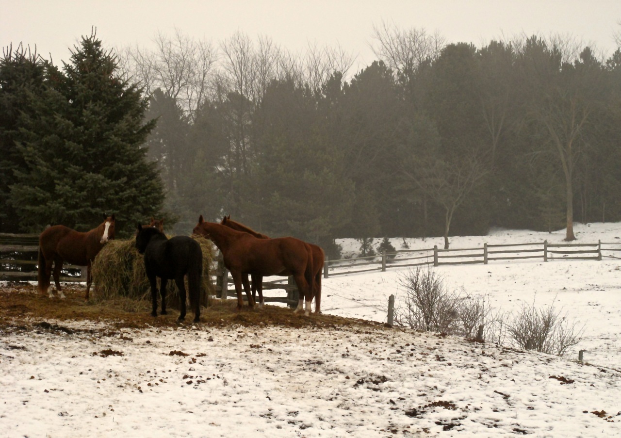 Grazing happily in spite of a misty, wintery day the horses had no idea what awaited them back at the barn…